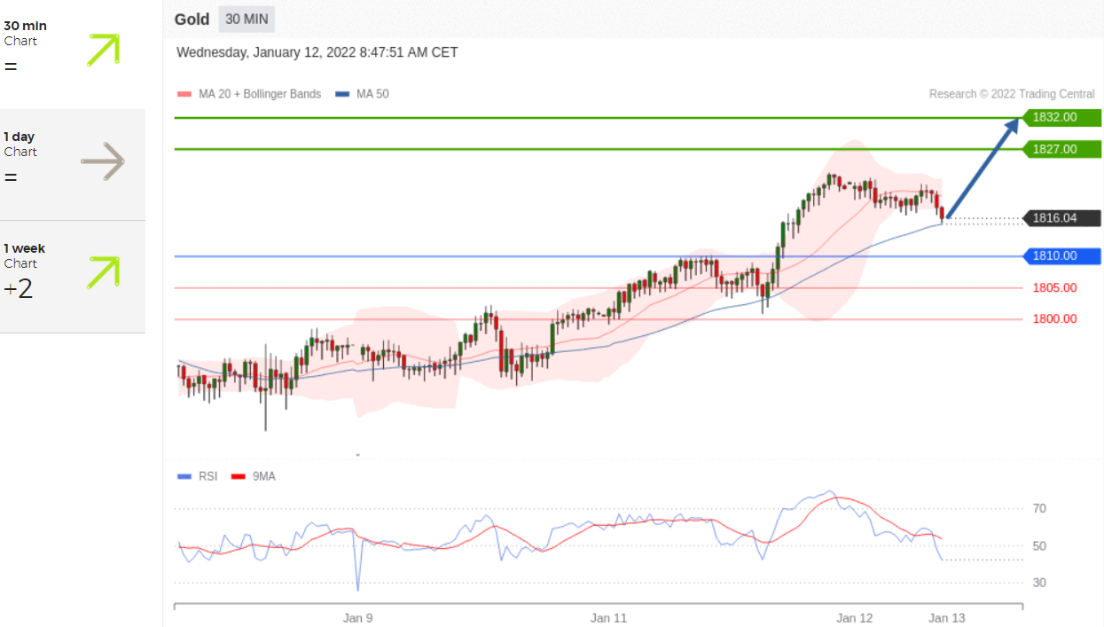 السيناريو المرجح : شـراء اعلـى ســعر 1810.00 مع مستـهدف اول 1827.00 ومستـــهدف ثاني 1832.00